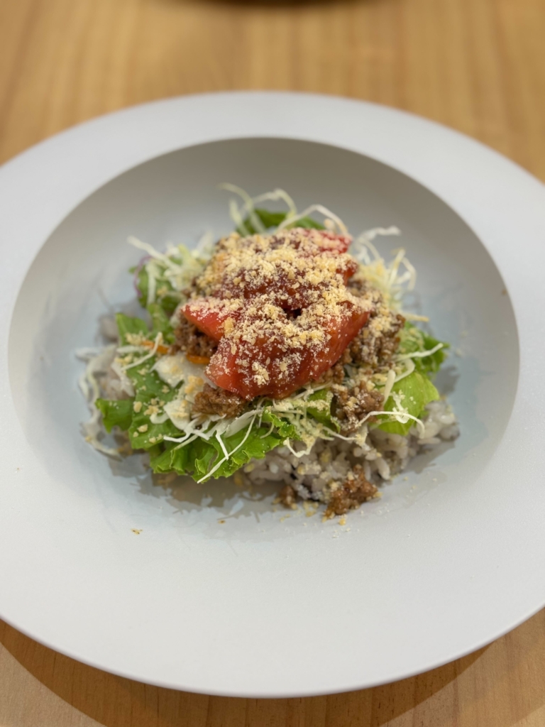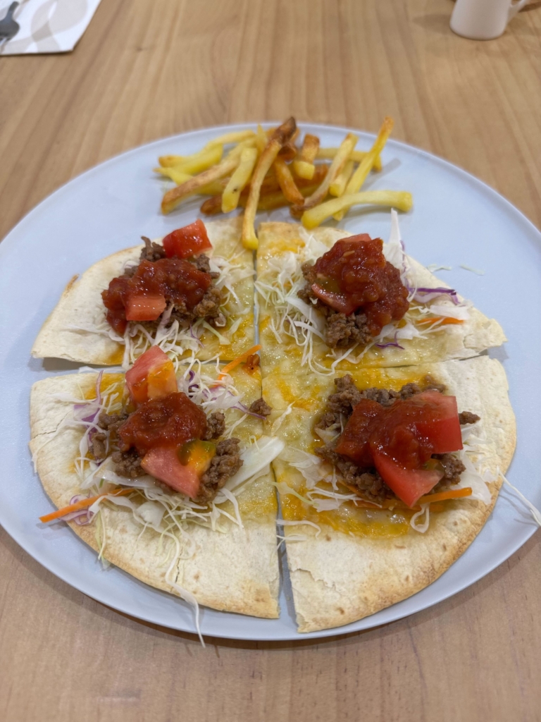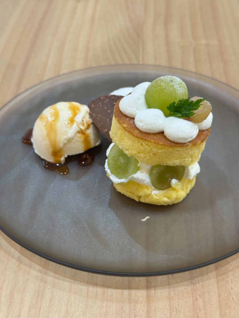 私はタコスとデザートでスイーツをいただいたのですが、タコスはスパイスの香りが食欲をそそるのに、味は優しくて食べやすかったです。デザートのスイーツは見た目もかわいくて、ふわふわのスポンジに甘さ控えめのクリーム、そこにぶどうのジューシーさが合わさって美味しかったです。