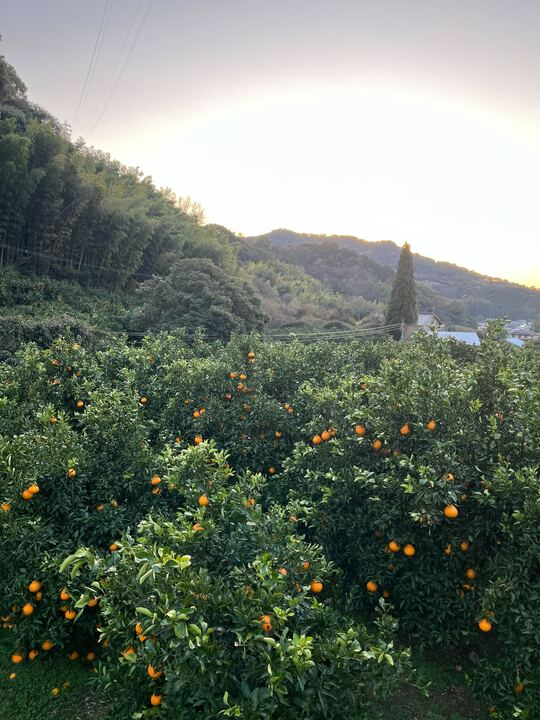 実家はみかん農家を営んでおり、年末になると毎年、みかんちぎりを手伝います。朝早くから畑に出て、冷たい空気の中で一つひとつ丁寧にみかんを収穫していきます。